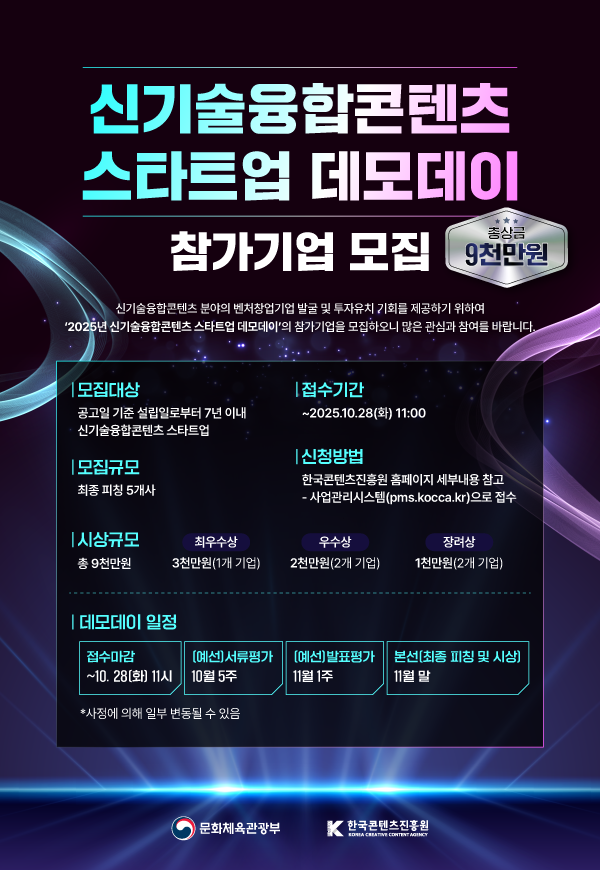 [한국콘텐츠진흥원] 2025 신기술융합콘텐츠 스타트업 데모데이 참가기업 모집 공고 (~10/28)